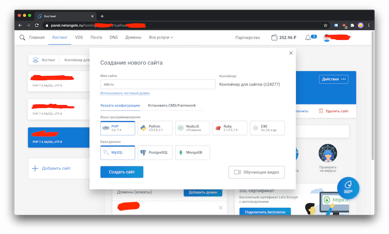 Выберите самый дешёвый хостинг и создайте на нём сайт. Предварительно купите домен в NetAngels (или в любом другом месте, на reg.ru, например) или создайте бесплатный, на котором будет работать TDS. Можно создавать сайт.
